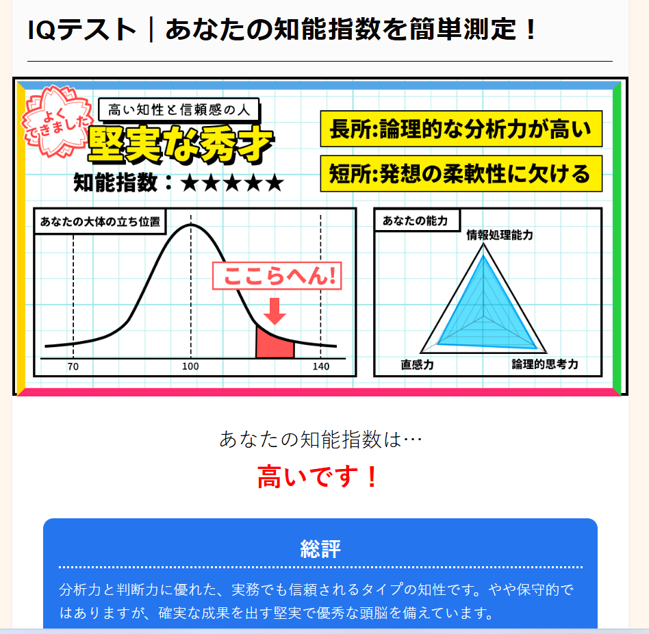 (強いて言うなら『損することが少ない』というのがIQが高い最大の得かもしれません)